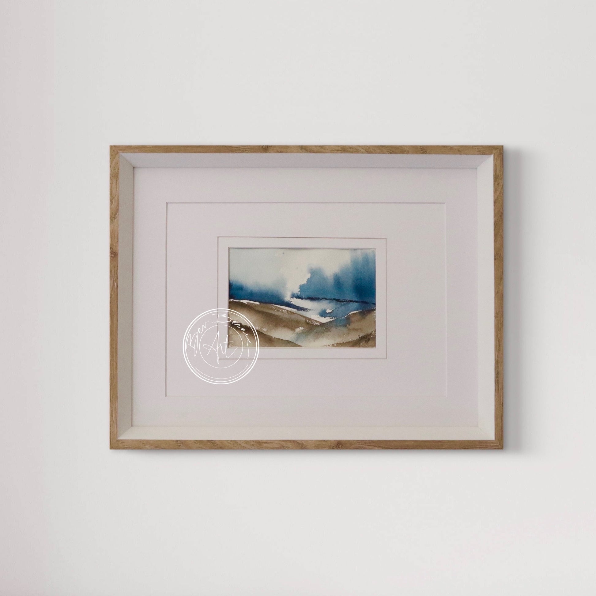 Experience the serene beauty of the highlands with Misty Highlands: Indigo and Sepia Series No. 1, an original hand-painted watercolour artwork. This evocative landscape blends rich indigo skies with sepia-toned hills to create a tranquil, atmospheric scene. Professionally mounted in a white mat, this piece is ready to frame and display in any room. Perfect for lovers of landscape art and earthy tones, this unique painting is a beautiful addition to your home or a thoughtful gift.
